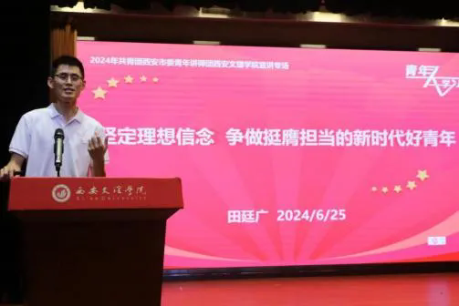 团市委青年讲师田廷广老师围绕“坚定理想信念——争做挺膺担当的新时代好青年”主题,重点从为什么要有理想信念、树立什么样的理想信念、怎样坚持理想信念等三个方面分享了理想信念的磅礴力量,勉励青年们要牢记习近平总书记殷殷嘱托,为强国建设、民族复兴贡献青春力量。