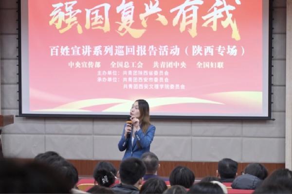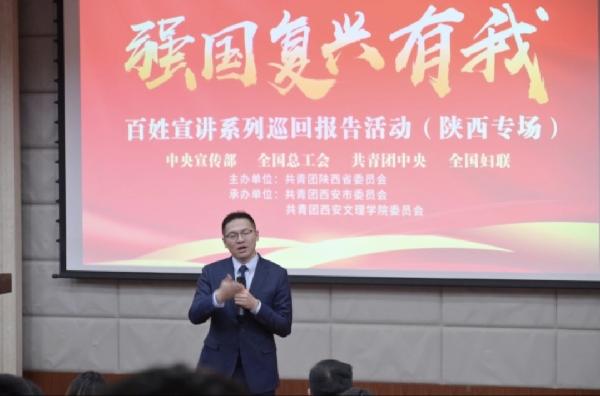 12月25日,在团中央宣传部、全国总工会、共青团中央、全国妇联的指导下,由共青团陕西省委主办,共青团西安市委和共青团乐鱼(中国)一站式服务官方网站委员会共同承办的“强国复兴有我”百姓宣讲(陕西专场)在我校图书馆报告厅成功举办。