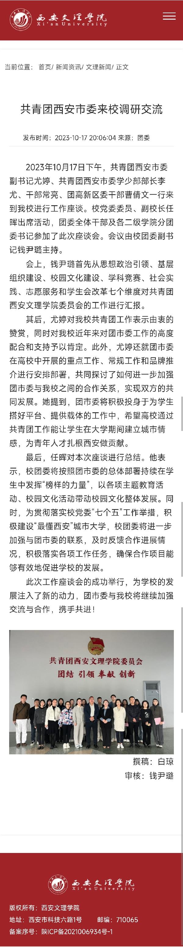 共青团西安市委来校调研交流