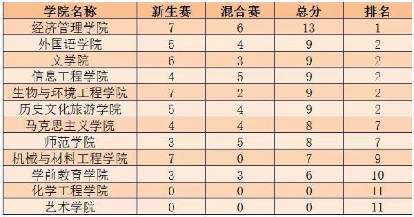 注:积分相同的学院按首字母顺序排序,其余排名不分先后,每场比赛结束后积分榜实时更新。