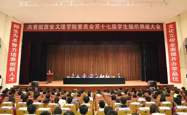 11月22日乐鱼(中国)一站式服务官方网站第十七届学生组织换届大会在大礼堂隆重举行。出席本次大会的老师有:团委书记乔新,团委副书记武文斌,团委办公室主任马原原,团委干部李爽、陈步云、陈猛。各二级学院的学生分会主席、副秘书长,各学生社团代表共计600余人参加了此次换届大会。
