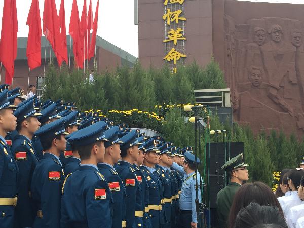上午10时仪式正式开始。仪式由陕西省西安市委副书记、西安市长董军主持。仪式第一项奏唱中华人民共和国国歌,参会人员高唱国歌,注意力高度集中,仪式第二项为烈士默哀,我校学生低头默哀半分钟,献上我校学生对烈士的我追思及祭奠。仪式第三项少先队员献唱《我们是共产主义接班人》。继而第四项献花篮给烈士,陕西省委副书记胡和平带领与会人员向烈士行三鞠躬,全场庄严肃穆。