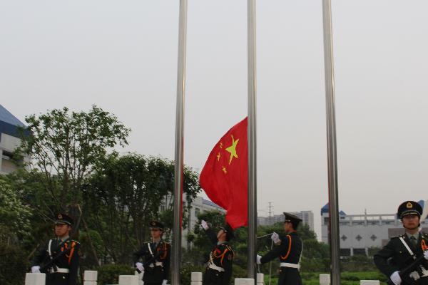 7点整,升旗仪式开始,伴随着雄壮的国歌声,国旗护卫队手举国旗步入升旗台,擎旗手用力一挥,鲜艳的五星红旗在微风中冉冉升起,随风飘扬。在场全体人员肃立,向国旗行注目礼,用心感受国旗升起的庄严时刻。随后,来自信息工程学院2014级物联网1班的蔡忠良同学做了《高举五四火炬,担负时代使命》的国旗下发言,抒发了当代学生勇于担当的历史使命感和励志成才的进取精神,展示了我校青年学生积极向上的精神风貌和高尚的道德情操,全体团员青年在蔡忠良同学的带领下,重温了入团誓词。
