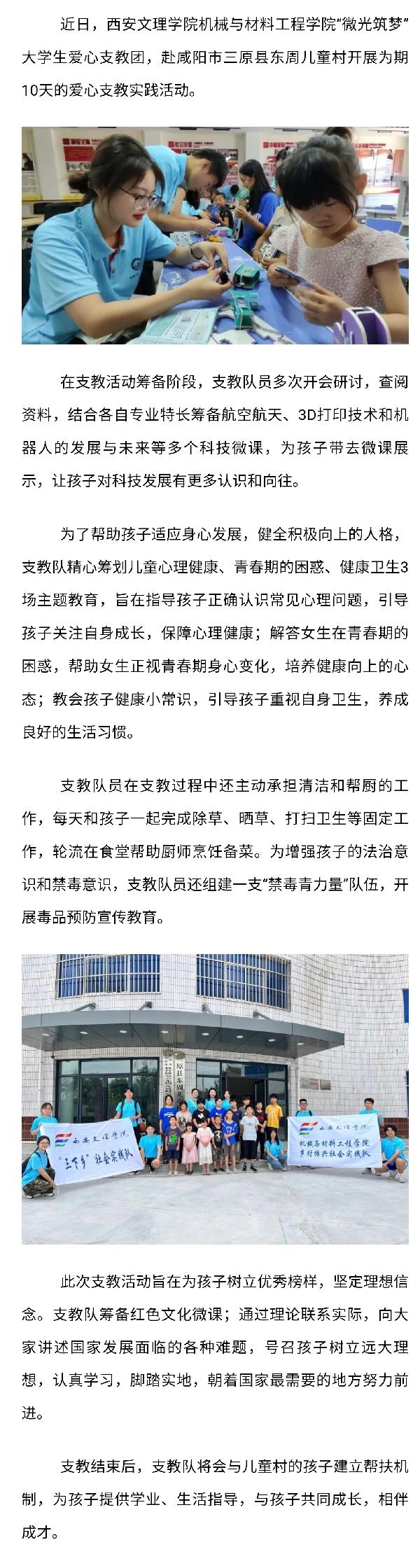社会实践 | “微光筑梦”——乐鱼(中国)一站式服务官方网站机械与材料工程学院开展爱心支教实践活动